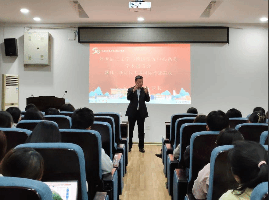 11月30日19:30,中国翻译协会副会长兼法人代表、中国外文局翻译院院长黄玉龙应邀在外语楼305会议室,为bwin中文官网师生开展了一场主题为“新时代中国国际传播实践”的学术讲座。本次讲座由外国语学院舒奇志教授主持,外国语学院师生参与。