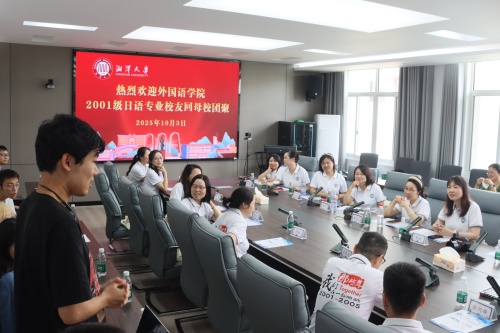 外国语学院(通讯员 梁建伟 陈臣)金秋送爽,丹桂飘香。10月3日上午,一场以2001级日语专业返校校友为中心的温情座谈在外语楼304会议室举行。17位校友从各地归来,与党委书记李锋、副书记刘行,日语系教师代表朱宪文、曾艳老师及11名在读学生代表齐聚一堂,围绕青春记忆、专业发展与母校情谊展开深情对话。