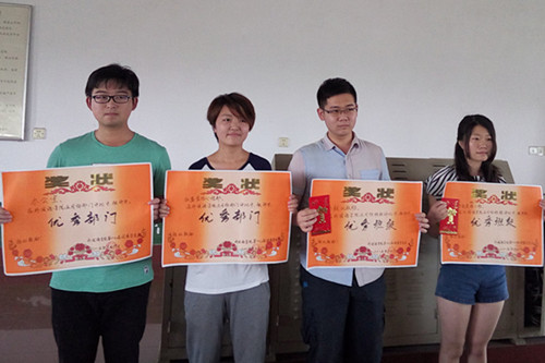 会议伊始,院学生会主席郑毅宣读五月份学生会各部门工作总结,并宣布了本月的优秀部门为办公室和权益生活心理部,优秀班级为13级汉语国际教育班和14级英语二班。蒋老师为获奖部门和班级颁奖。随后,优秀班级代表发言,分享班级凝聚力建设的心得体验。