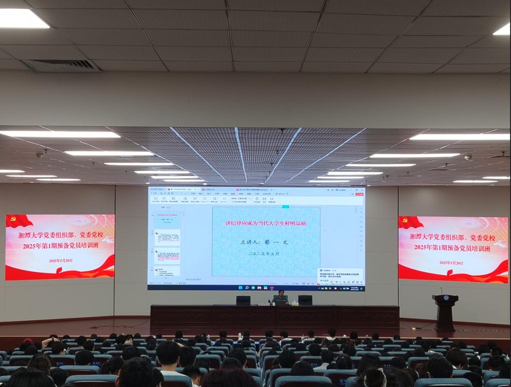 外国语学院(通讯员 江欢欢、蒋孟昕)5月20日下午,湘潭大学党委组织部、党委党校于研究生院报告厅组织开展2025年第1期预备党员培训班第二次专题讲座。湘潭大学纪委副书记蔡一文为全体学员授课。