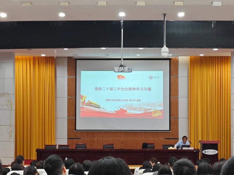 外国语学院(通讯员 邝琪、蒋孟昕)10月18日下午,湘潭大学党委组织部、党委党校在逸夫楼第一报告厅组织开展2025年第2期发展对象培训班第三次专题讲座。湘潭大学马克思主义学院教授杨小军为全体学员授课。