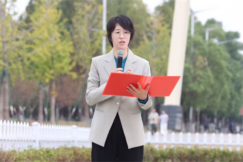 机关党委组织部统战部联合党支部书记陈娟在发言中回顾复校时的满目荒凉,赞美老教师们“卷起铺盖就出发”无私奉献的湘大精神。她表示,湘大扎根精神不仅是一代人传承的记忆,也是几代人接续奋斗的灯塔,通过结对共建,希望师生党员携手推动湘大精神的传承与发展,脚踏实地,追求卓越,共创湘大更美好的明天。